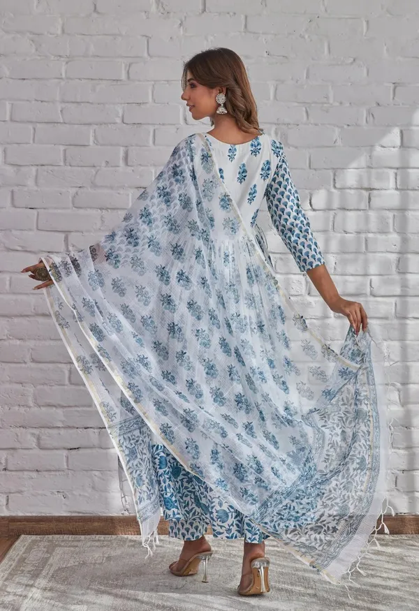 Americanchoice Cotton Anarkali Kurta With Pant & Dupatta Set