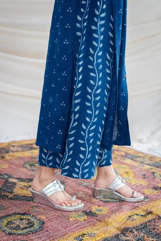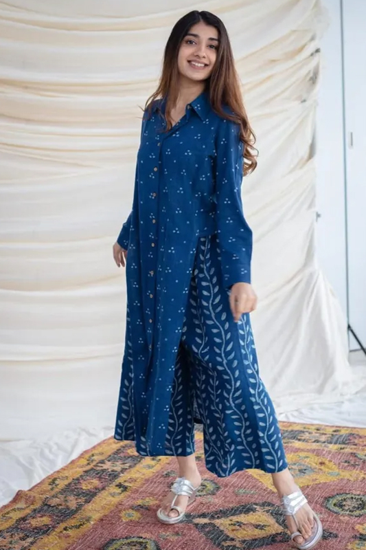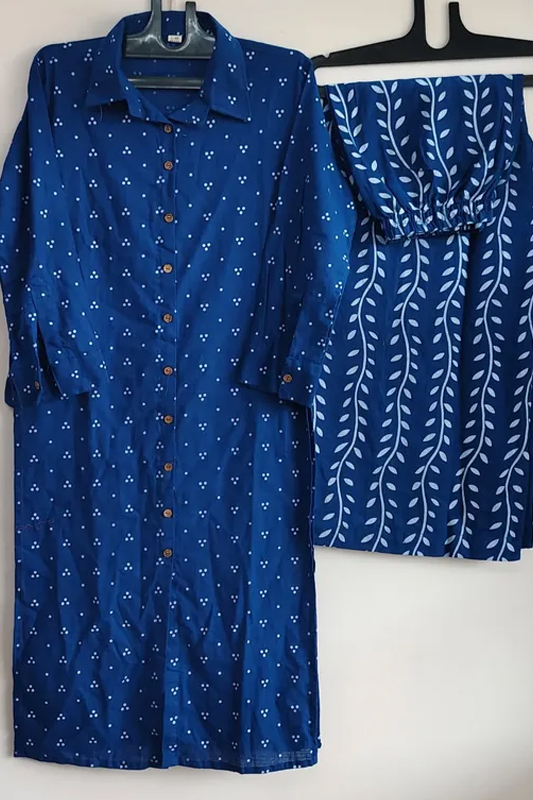 Americanchoice Blue Cotton Printed Kurta With Palazzo