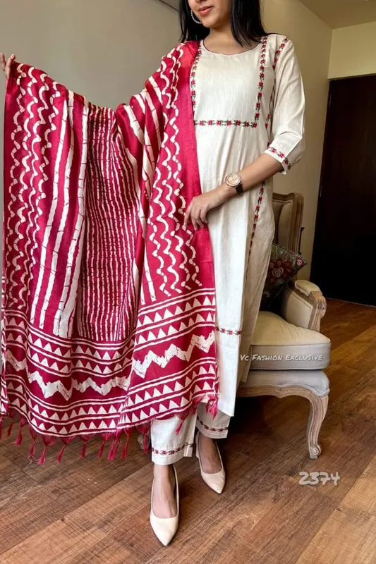 Americanchoice Off White Khadi Cotton Kurta With Bottom with Khadi Silk Dupatta
