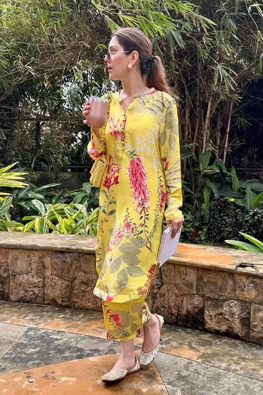 Americanchoice Yellow Muslin Fabric Co-Ord Set