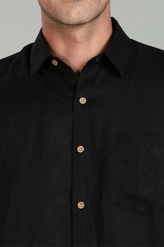 Black Pure Linen Full Sleeve Shirt