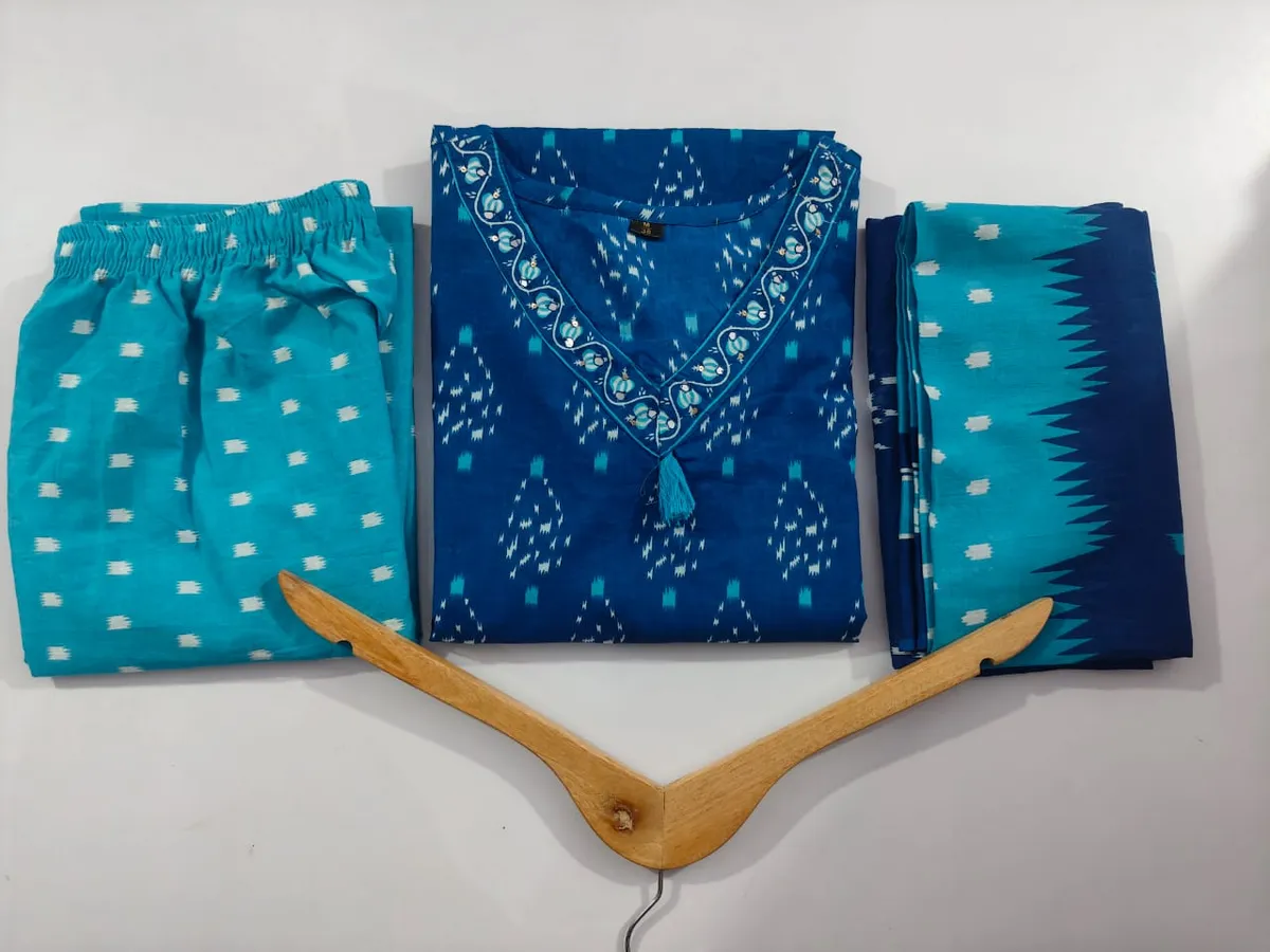 Cotton Printed Kurta With Pant & Dupatta Set