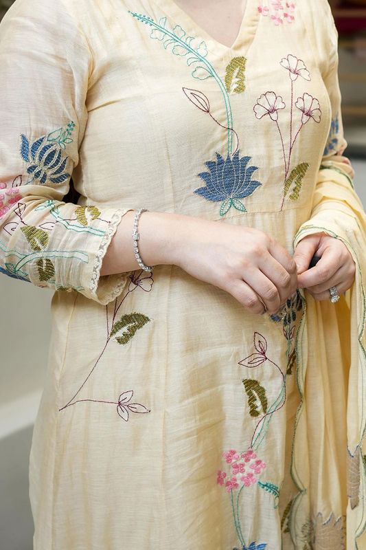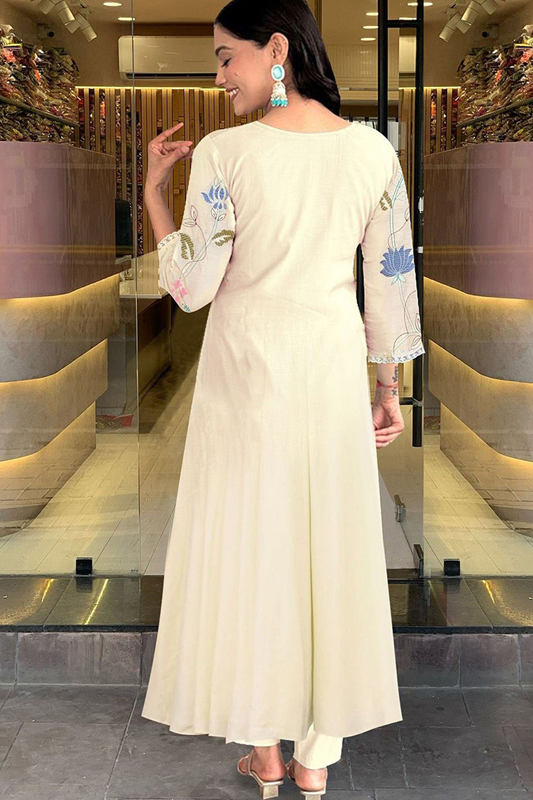Women’s Elegant Chanderi Cotton Embroidered Anarkali Kurta Set with Dupatta